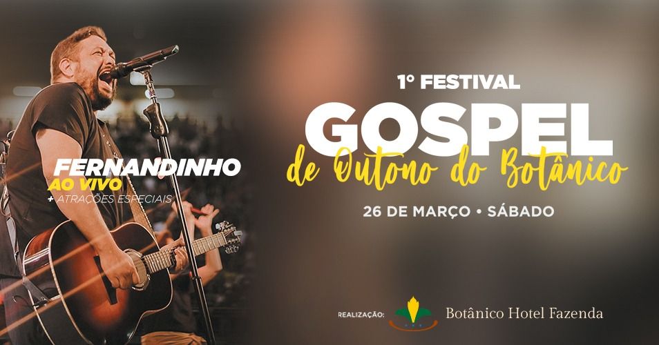 O festival contará com o cantor Fernandinho como atração principal e acontecerá no Centro de Convenções & Praça de Eventos do Botânico Hotel Fazenda, com abertura dos portões às 15h.